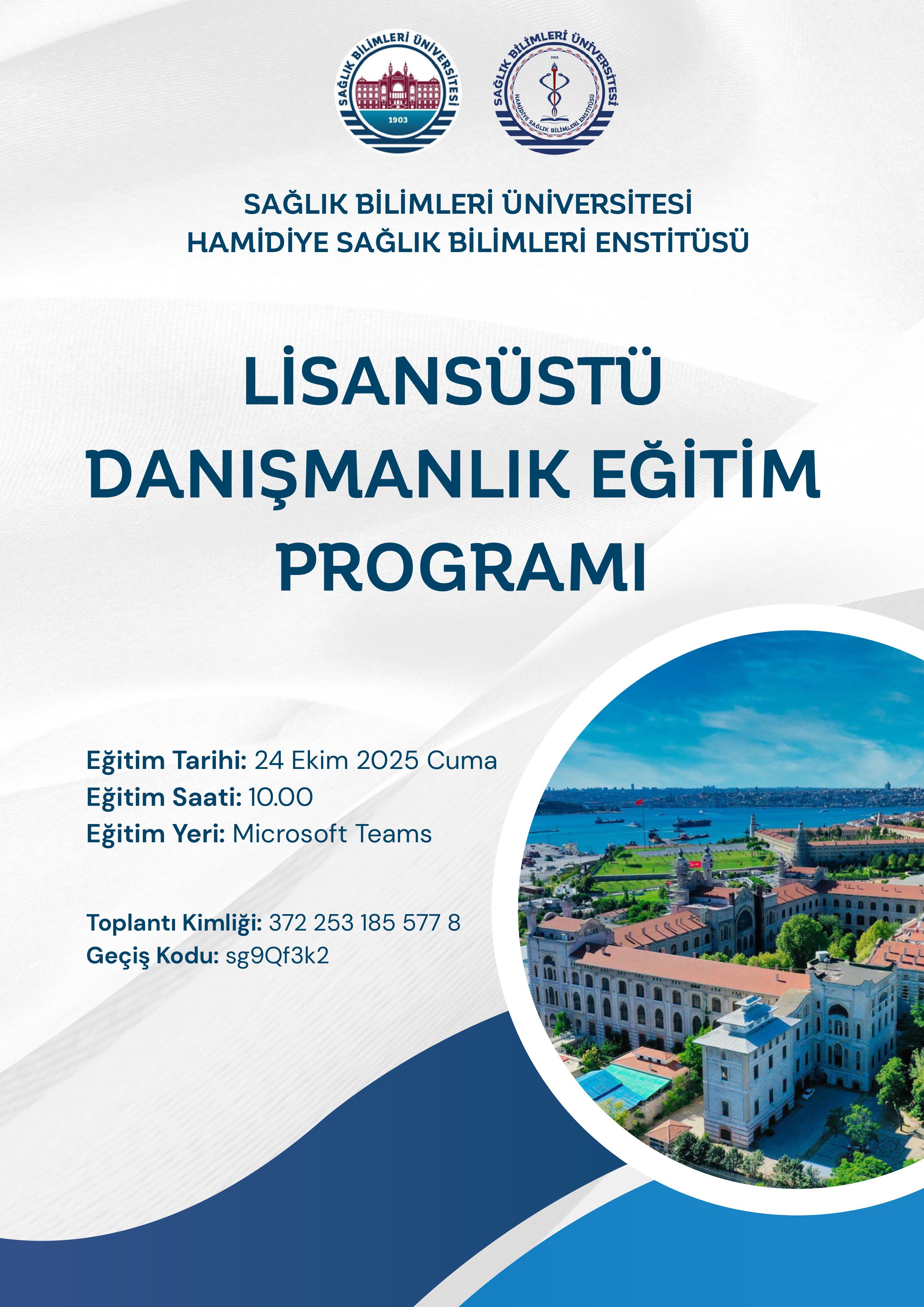 Sağlık Bilimleri Üniversitesi Hamidiye Sağlık Bilimleri Enstitüsü Lisansüstü Danışmanlık Eğitim Programına tüm öğretim üyelerimizin katılımı beklenmektedir.