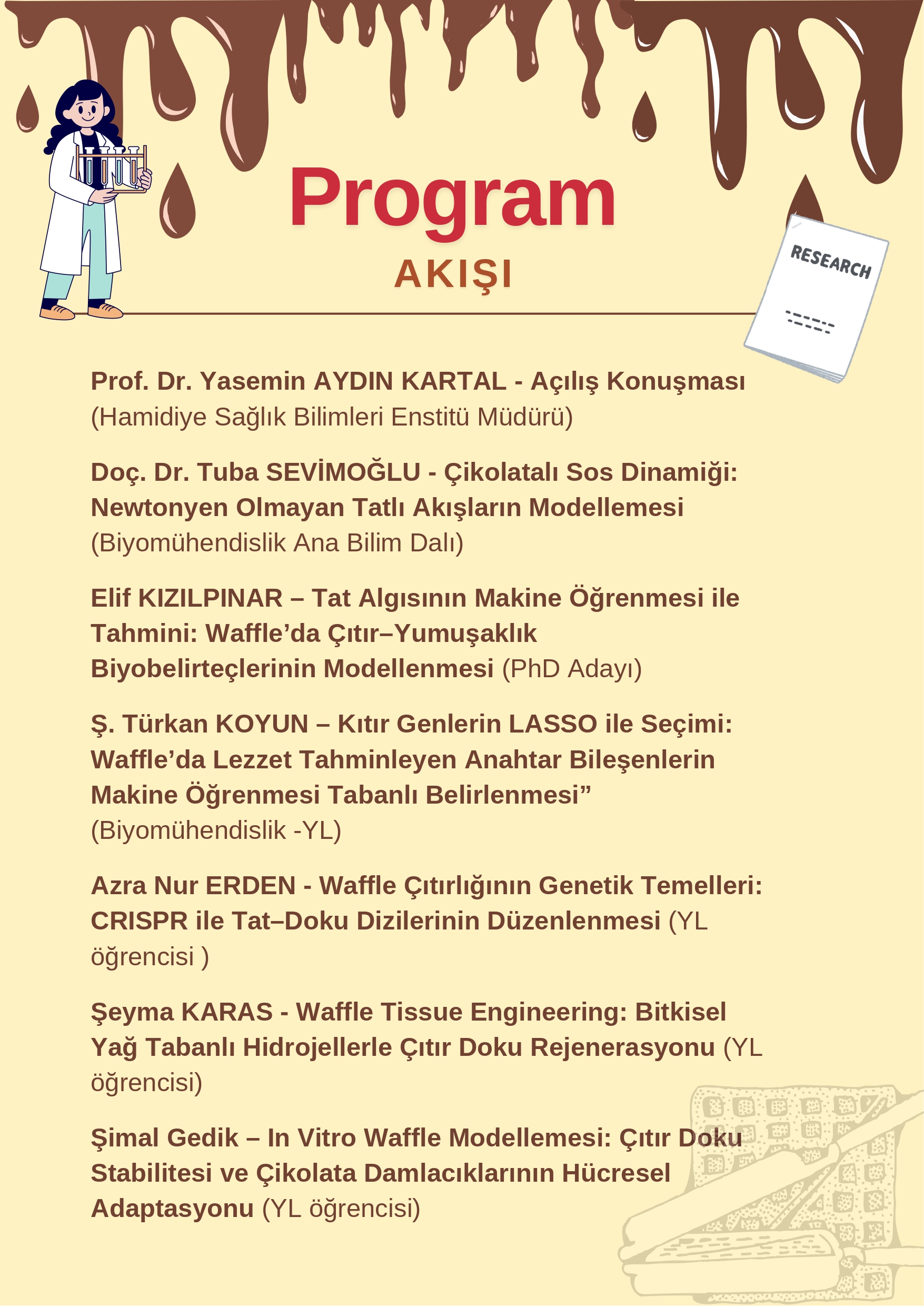 Enstitümüz Biyomühendislik Ana Bilim Dalı öğretim üyesi Doç. Dr. Tuba SEVİMOĞLU ve yüksek lisans öğrencileriyle düzenlenen Waffle Sempozyumu, Enstitümüz öğrenci, akademik kadrosu ve idari personelimizin katılımıyla başarıyla gerçekleştirildi.