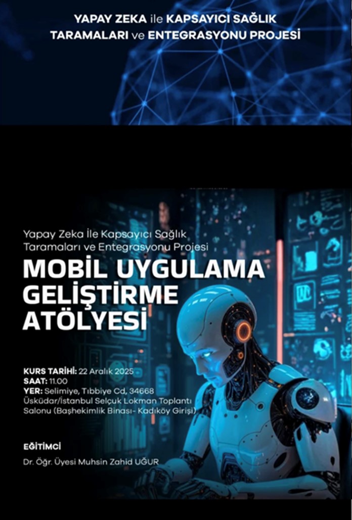 Üniversitemiz Sağlık Bilimleri Enstitüsü Sağlık Bilişimi Sistemleri Anabilim Dalı öğretim üyelerinden Dr. Öğr. Üyesi Muhsin Zahid UĞUR, İstanbul İl Sağlık Müdürlüğü tarafından yürütülen ve İstanbul Kalkınma Ajansı (İSTKA) tarafından desteklenen projede eğitmen olarak akademik destek sağladı. "Yapay Zeka ile Kapsayıcı Sağlık Taramaları ve Entegrasyonu" projesi kapsamında, Ar-Ge ve Projeler Koordinatörlüğü tarafından düzenlenen "Mobil Uygulama Geliştirme Atölyesi", 10 ve 22 Aralık 2025 tarihlerinde Sultan 2. Abdülhamid Han Eğitim ve Araştırma Hastanesi Selçuk Lokman Konferans Salonunda gerçekleştirildi. Dr. Öğr. Üyesi Muhsin Zahid UĞUR’un eğitmen olarak yer aldığı programda; yapay zekâ teknolojilerinin mobil sağlık çözümlerine entegrasyonu ve dijital sağlık ekosisteminin geliştirilmesi konuları ele alındı.